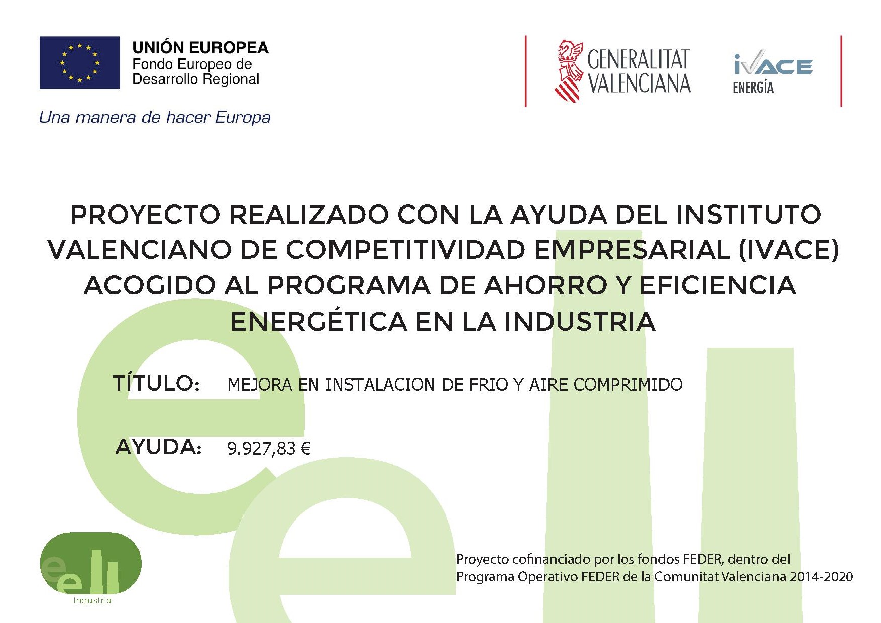 Venta de arroz Arroz 01/01/2025![]() En nuestra cooperativa puede adquirir arroz de las variedades Bomba, JSendra y Albufera bien en una tradicional bolsa de tela ideal para regalar. Este arroz se puede comprar tanto en nuestras oficinas de la calle Valencia nº 1 como en el almacén de Suministros. | La Cooperativa invierte en eficiencia energética Nueva 23/05/2018![]() Durante el pasado año 2017 se han acometido mejoras en la instalación de frio. Este proyecto de inversión ha sido posible gracias a la subvención de IVACE, dentro de Programa de Ahorro y Eficiencia Energética en la Industria. La inversión que supera los veinticinco mil euros, cuenta con una ayuda de 9.927,83 euros, como “Proyecto acogido a las ayudas de IVACE cofinanciado por la Unión Europea dentro del Programa Operativo FEDER de la Comunitat Valenciana 2014-2020”. Como resultado se ha obtenido un ahorro anual en energía primaria de más de siete toneladas equivalentes de petróleo, lo que supondrá un ahorro económico de más de dos mil ochocientos euros anuales. Y evitará la emisión a la atmósfera de más de once toneladas de CO2 al año. | Venta de pellets Nueva 02/01/2024![]() En nuestro almacén de Suministros podrá encontrar el saco de Pellets de 15 kg. por sólo 4,50 Euros I.V.A. incluido. |
